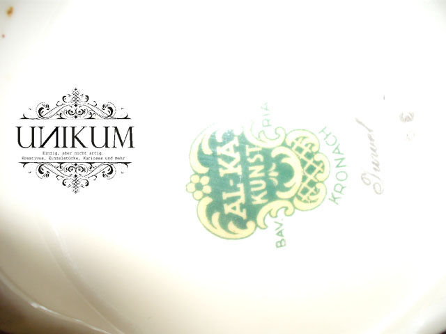 großer Rosenteller mit Applikationen, Marke T im Lorbeerkranz und mit Krone, Alter unbekannt, 12,- Euro